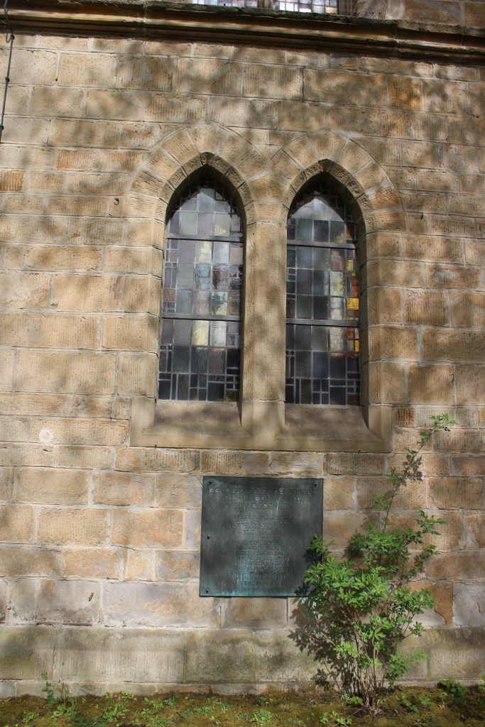 Erhalten geblieben – oder möglicherweise als Ersatz für das in den Jahren 1945 (?) oder 1955 (?) zerstörte oder abgerissene Denkmal errichtet – ist eine Gedenktafel an der Mauer der Kirche. Sie trägt die Namen der Gefallenen der Kriege von 1866 (Preußisch-Österreichischer Krieg), 1870/71 (Deutsch-Französischer Krieg) sowie von 1904 (Krieg gegen die Herero bzw. dem Völkermord an den Herero und Nama). Viele der aufgelisteten Namen lassen sich bekannten Bochumer Familien zuordnen.