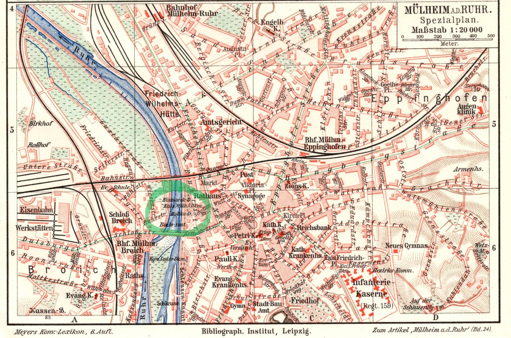 Der genaue Standort ließ sich zunächst weniger durch den heutigen Zustand vor Ort als vielmehr mithilfe einer historischen Stadtkarte erschließen. Die Lage an der Ruhr, hinter dem Rathaus, wird zudem durch die wenigen erhaltenen Fotografien der Denkmalgruppe bestätigt.
