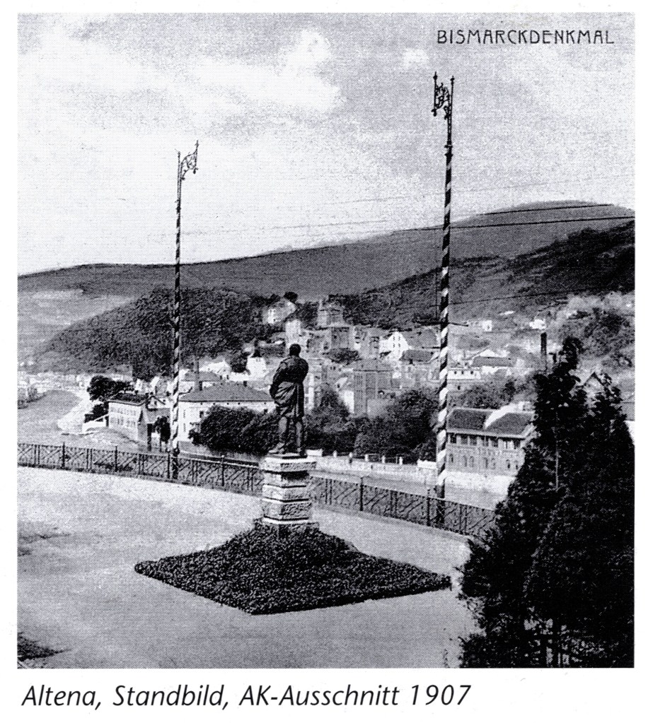 Kommerzienrat Gustav Selve ließ sich in Altena nicht nur eine prachtvolle Villa errichten, sondern auch ein Bismarckdenkmal unmittelbar vor der Haustür. Nach Seele (2005) befand es sich „gegenüber der Villa Alpenburg“. Das Bauwerk ist auch heute noch, etwas außerhalb des Stadtkerns von Altena, leicht zu finden.