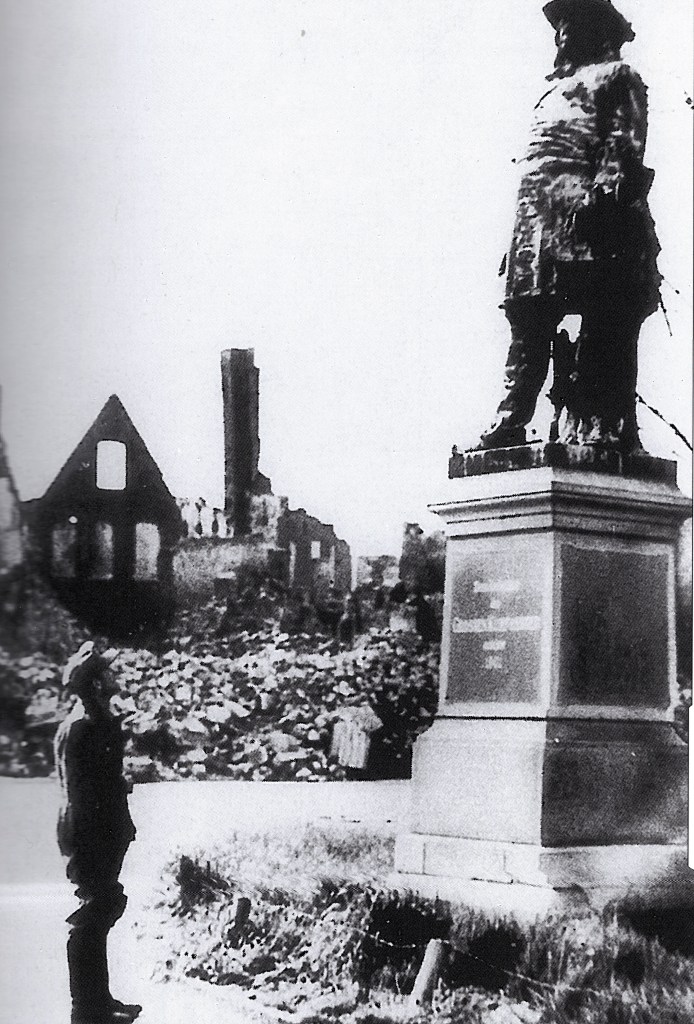 Eine historische Aufnahme in Haddinga (2020) zeigt das Denkmal nach den Bombenangriffen vom 06.09.1944.5